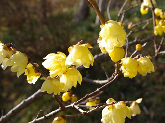 ソシンロウバイは年内からぽつぽつ咲き始め、新春を飾る。